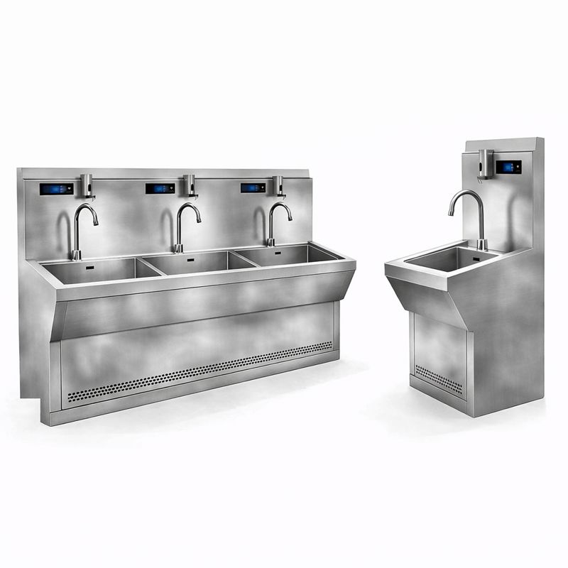Paslanmaz Otomatik Kontrollü 3’lü Doktor El Yıkama & Dezenfektan Ünitesi; hastane, laboratuvar ve steril alanlarda